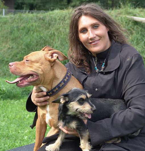 Christiane Rohn mit Deutschlands bekanntestem „Kampfhund“. Der Name soll erraten werden. Kleine Hilfe: wir werden über ihn in der September-Ausgabe des Kaukasen-Blättles schreiben